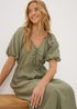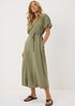 The Khaki Tie Waist Midi Dress combines elegance and effortless style. Featuring a khaki colour, this dress is designed with flattering short sleeves and a V-neck for a chic, feminine look. The tie waist belt cinches at the waist, creating a beautifully defined silhouette, while the midi length offers a graceful, flowing fit. Perfect for both casual and semi-formal occasions.