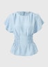 Effortlessly elegant, this light blue blouse combines delicate design with everyday versatility. Angel sleeves add soft movement, while the elasticated cinched waist nips in at the middle for a flattering shape. Crafted from light and breathable fabric, it transitions seamlessly from workwear to weekend styling.