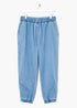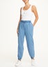Allow yourself to unwind on a lazy day with these relaxed denim joggers. Crafted from cool and comfortable cotton2C| they feature an elasticated waist and drawstring tie for an adjustable fit, as well as cuffed hems for added cosiness. Completed with working side pockets for a practical finish, these joggers are ideal for pairing with a vest top and trainers for a casual look. Model Height: Approx 5ft 8. Inside Leg Length: 68cm.