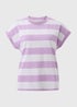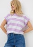 Add a fresh pop of colour to your wardrobe with the Lilac Stripe Slub T-Shirt. Made from soft, textured slub cotton, this relaxed-fit tee features delicate lilac and white stripes for a laid-back, feminine look. Lightweight and breathable, it’s perfect for easy everyday styling.