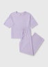 Add a pop of pretty pastels to your nightwear with this dreamy lilac pyjama set. Crafted from soft fabric with a textured waffle finish, the short-sleeved T-shirt features a classic crew neckline and relaxed fit, while the matching wide leg bottoms are designed with a stretchy elasticated waistband for a comfortable fit. Perfect for lounging or a restful night’s sleep.