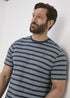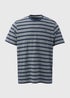 The Lincoln Navy Design T-Shirt is a stylish and comfortable addition to any wardrobe, featuring a navy base with tasteful horizontal stripes in shades of blue and grey. Its soft, breathable fabric ensures comfort, while the short sleeves and round neckline offer a classic look. A subtle chest logo adds a touch of elegance, making this t-shirt a versatile piece for both casual and semi-formal occasions.