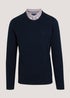 Layer up your look with ease by treating yourself to this cosy piece from the Lincoln collection. Created with soft navy fabric, it comes with a nice amount of stretch and a mock shirt collar for a more sophisticated twist on an Autumn/Winter classic. Finish your outfit with jeans and smart shoes. Model Height: 6ft.