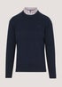 Add a new essential to your smart-casual wardrobe with this mock shirt jumper by Lincoln. Perfect for dressing in-between seasons, the classic crew neck is crafted in a soft navy knit and features a checked button-down mock shirt collar. It's finished with signature Lincoln embroidery to the chest. Perfect for teaming with jeans on your days off from work. Model Height: 6ft.