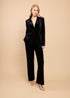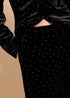 Make a statement in these black velvet wide leg trousers, embellished with eye-catching gold diamanté details for a touch of sparkle. Featuring a high waist and regular fit, these glamorous trousers elongate the silhouette while keeping you comfortable. Pair with the matching blazer for the ultimate co-ord party look that commands attention.