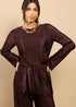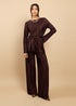 Stay sleek in this brown plisse longline top. The textured fabric and relaxed silhouette make it perfect for day-to-night dressing, styled with tailored bottoms or paired with the coordinating brown plisse wide leg trousers.