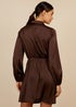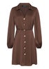 Learn moreFrom Little Mistress by Vogue Williams, this chocolate satin mini dress comes with a flattering V-neckline and a pretty lapel collar. Featuring an empire waistline, too, blouson sleeves and gold mottled button detailing at the front complete the design. Length: 89cm.