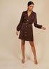 From Little Mistress by Vogue Williams, this chocolate satin mini dress comes with a flattering V-neckline and a pretty lapel collar. Featuring an empire waistline, too, blouson sleeves and gold mottled button detailing at the front complete the design. Length: 89cm.