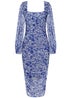 Learn moreMediterranean-inspired blues and on-trend mesh fabric give go-to florals a new season refresh. Ruched and figure-hugging for a flattering fit, this dress from Little Mistress is framed with a square neck and back, ensuring it makes a statement from all angles. The finishing touch? Dramatic sheer blouson sleeves. Accessorise with white mules for a sleek occasion look. Length: 118cm.