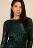 Learn moreA party wardrobe is never complete without a sequin dress, and this little emerald showstopper from Little Mistress is guaranteed to be a firm favourite. Featuring a split hem, ruched waist and slash neckline, simply style with a barely there heel. Length: 89cm.