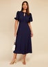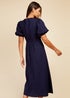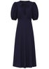Little Mistress Navy Textured Puff Sleeve Midi Dress