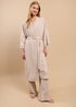 Embrace cosy comfort with this Oatmeal Ribbed Dressing Gown, featuring a soft ribbed texture, classic collar, and long sleeves for a relaxed yet refined look. With its regular fit and neutral tone, it’s perfect for layering over your favorite co-ord sets or loungewear. A must-have for effortless everyday comfort.