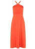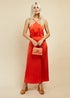 Slip our figure-skimming satin maxi on for summer weddings or holiday sundowners. Styled with a minimal halter neck slip style with a zingy orange hue, it's nipped in at the waist and finished with a shirred back for comfort and style. Just add gold strappies and jewellery to complete the look. Length: 126cm.