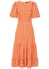 Learn moreFloat through summer in our pretty gingham midi Designed with a subtly nipped-in waist and frill-trimmed tiered hem, it's framed by ultra-feminine puff sleeves for a prairie vibe. Paired with ankle boots or sandals, it's an all-weather wonder. Length: 126cm.