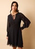 Learn morePlayful yet chic, this Little Mistress Polka Dot Mini Dress by Vicky Pattison features a classic round neckline and a flattering A-line silhouette. With its long sleeves and mini length, it’s the perfect blend of charm and elegance for any occasion.