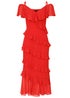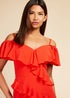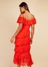 Little Mistress Red Frill Cold Shoulder Midi Dress