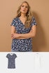Long Tall Sally 2 Pack Navy Blue & White Abstract Cotton Henley Tops