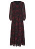 Style your A/W evenings to perfection with this rose print dress. Made from a soft chiffon fabric, it features a ruched waist and completes with a tiered style skirt that falls at a maxi length. Wear with heeled boots and layer a biker jacket to complete the look! Model is 5'10.5"/179cm and size UK 10/EU 38.