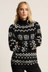 Long Tall Sally Black Knitted Snowflake Roll Neck Jumper