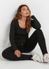 Long Tall Sally Black Ribbed Button Long Sleeve Top