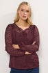 Long Tall Sally Burgundy Red Animal Burnout Tie Blouse