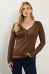 Long Tall Sally Chocolate Brown Cotton Ribbed Henley Top