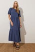 Long Tall Sally Denim Blue Puff Sleeve Tiered Midaxi Dress