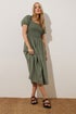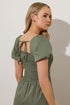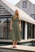 Long Tall Sally Khaki Green Shirred Puff Sleeve Midi Dress