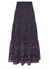 Long Tall Sally Navy Blue Floral Border Tiered Maxi Skirt