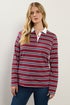 Long Tall Sally Red & Navy Blue Striped Jersey Polo Top