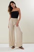 Long Tall Sally Stone Brown Matt Satin Wide Leg Trousers
