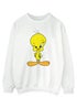 Looney Tunes Angry Tweety Women White Graphic Sweatshirt