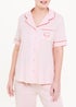 Learn morePerfect for Valentine's Day gifting, these sweet PJs put comfort at the forefront. Crafted from 100% cotton, the traditional pink set features a short sleeve pyjama top trimmed with a collared button front. A single chest pocket finished with 'Love' embroidery is also featured. Matching straight leg PJ pants with an elasticated waist complete the duo.
