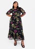 Lovedrobe Black Floral Half Sleeve Midaxi Dress