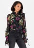 Lovedrobe Black Floral Tie-Neck Long Sleeve Blouse