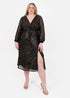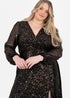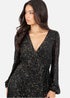 Lovedrobe Black & Gold Sequin Faux Wrap Long Sleeve Midi Dress