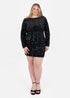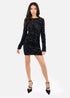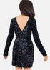 Whether you're attending a cocktail party or a special celebration, this sequin mini dress will make you stand out from the crowd. Cut to a figure-skimming bodycon silhouette, the design reveals a demure round neckline to the front, offset by a plunging V-back for a touch of allure. The black velvet base is lavishly embellished with iridescent, multicoloured sequins, lending captivating depth and dimension. Finished with long sleeves for balance, this statement piece pairs perfectly with bold earrings and platform heels for an unapologetically glamorous look.