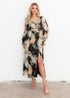 Lovedrobe Faux Wrap Black/Off White Long Sleeve Tie Back Midaxi Dress