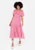 You don't need to travel far for a holiday romance, fall in love with this Pink Bardot midi dress from Lovedrobe. Designed for effortless styling, it features a flattering off the shoulder neckline that flows into romantic double layer short sleeves with scalloped edge. Delicate floral embroidery adds a timeless touch, while the shirred waist beautifully enhances the A-line silhouette. The voluminous, tiered midi skirt creates the perfect balance of femininity and flair. Dress it up with statement heels and jewellery or keep it simple with white sandals for an effortless daytime look.