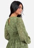 This season’s must-have fabric takes centre stage with our latest collection. In a trendy green khaki shade this long-sleeved mini dress features a stunning floral burn-out pattern that adds an elevated touch to this fun piece. Designed with a timeless V-neckline and a flattering empire waist it’s complemented by a shirred back to ensure all-day comfort and a perfect fit. Pair this statement piece with platform heels for a fun and playful vibe or dress it down with trainers and a leather jacket for an effortlessly chic casual look.