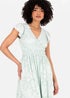 Its captivating hue and intricate detailing offer an immersive collaboration destined to become your go-to for any upcoming event. This Green dress is crafted from breathable jacquard fabric adorned with delicate floral motifs that elevate this maxi. Elegant faux wrap bodice features an elasticated waist for comfort and short flutter sleeves and keyhole detail to the reverse add a charming note while the asymmetric panelling on the maxi skirt intensifies the ruffled hemline that’s perfect for the dance floor. This occasion midi is an ideal choice for bridesmaids or other celebrations. Style with Silver accessories and shimmering clutch bag.