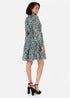 Upgrade your autumnal wardrobe with this long-sleeved mini dress. Intricate green damask pattern pops against the light backdrop with subtle silver pinstripe accents, making this piece versatile enough to effortlessly go from workdays to date nights. Shirt-style bodice is completed with a classic collar and long, cuffed sleeves, while the contrasting mini skirt adds a touch of allure. Pair with heels and top handle bag for a stylish look.