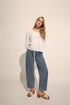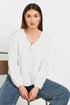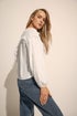 Complete your summer whites collection with this fringed seam blouse. Made from a soft woven fabric, it features long cuffed sleeves and a v-neckline with tie front detailing. Match with your best denim and platform wedges to recreate your style this spring-summer!