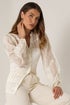 Curate your desk-to-dinner wardrobe with this metallic dash blouse. Made from a woven mesh fabric, it features long buttoned sleeves, a notch neckline and is completed in a button up style. Partner with coated trousers and complete with flats by day and heels by night!