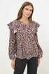Add a feminine feel to your blouse rotation this autumn. Made from a lightweight woven fabric, this blouse features a floral design, v-neckline with tie detail, long sleeves and a ruffled neck trim for an elevated look. Style with denim and your choice of flats for an elegant outfit you'll always reach for. Model is 5'8.5" / 174.5 cm and size UK 10 / EU 38.