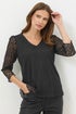 Elevate your wardrobe this autumn with a new style. Made from a comfortable stretch jersey fabric, this top features a floral lace overlay detail with a full lining finished with 3/4 length sleeves and a v-neckline for a flattering fit. Style with your favourite denim and flats for an elegant look you can wear all season! Model is 5'7"/170cm and size UK 10/EU 38.