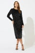 Embrace a new style in your party collection with this must-have dress, from M&Co. Made from a soft velvet fabric, this dress features sequin embellishment, long sleeves, round neckline and a back zip fastening. It is complete with gathered detailing and a midi length for a flattering finish. Style with heels for a look you can rely on during party season