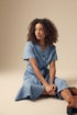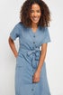 A must-have casual dress for all of your everyday plans. Made from a comfortable denim fabric, it features a collarless v-neckline, short sleeves, a belted waist and button fastenings. Team it with sandals and a jacket this season. Model is 5'8.5" / 174.5 cm and size UK 10 / EU 38.