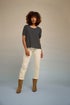 Stay on-trend in these must-have mom jeans. Made in a comfortable ecru denim fabric, they feature belt loops, a zip and button fastening, 5 functional pockets, and a high-waisted mom fit. Team with a striped tee and trainers for off-duty chic. Model is 5'/152cm and size UK 8/EU 36.