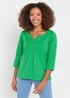 M&Co Green Cotton 3/4 Sleeve Henley Top